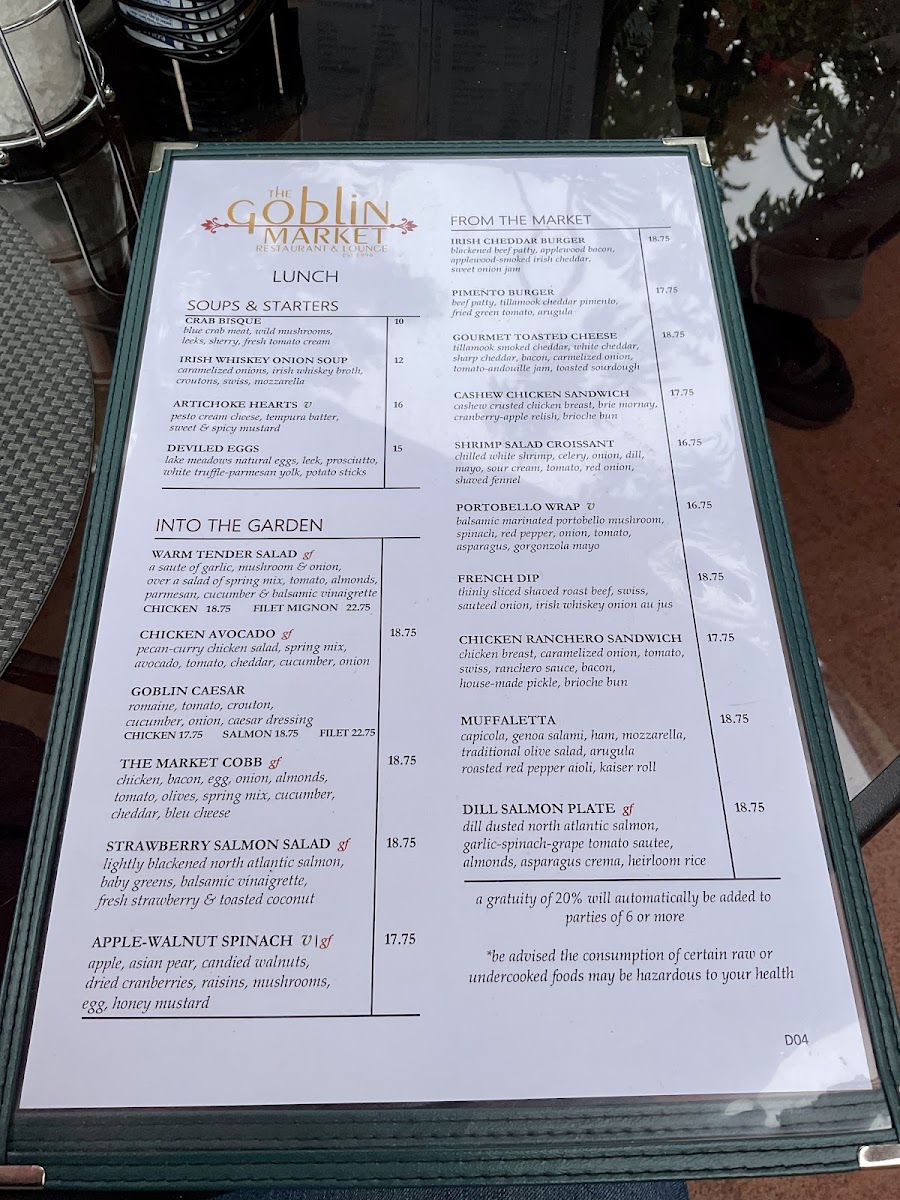 Located in the charming town of Mt. Dora, The Goblin Market Restaurant & Lounge boasts a diverse and creatively curated menu that is sure to delight every palate. Begin your culinary adventure with standout Soups & Starters like the rich Crab Bisque and the comforting Irish Whiskey Onion Soup, offering layers of flavor.